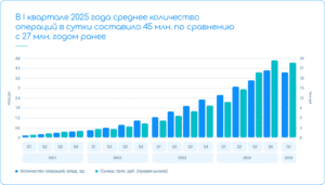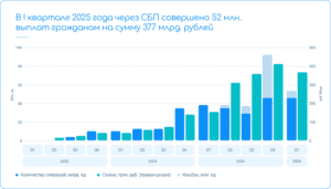 According to the Central Bank of Russia, according to the results of the first quarter of 2025, citizens conducted 4.1 billion transactions worth 22.6 trillion rubles through the SBP. Compared to the same period last year, the figures increased 1.6 and 2.1 times, respectively. Forecasts show that the volume of transactions through SBP will increase by another 35%, which confirms the growing popularity of this system among financial institutions and their clients.