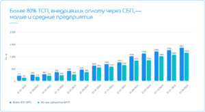 According to the Bank of Russia, the number of trade and service enterprises (TSPS) accepting payments through the SBP amounted to 2.4 million units. The number of SMEs in the SBP exceeded 1.9 million, which is 29% of the total number of SMEs.